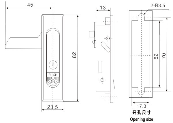 push the button and swing the handle to open or lock。 |