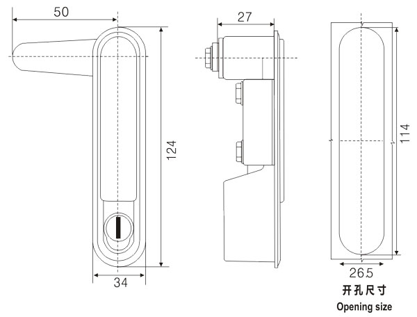 push the button and swing 90 °the handle to open or lock。